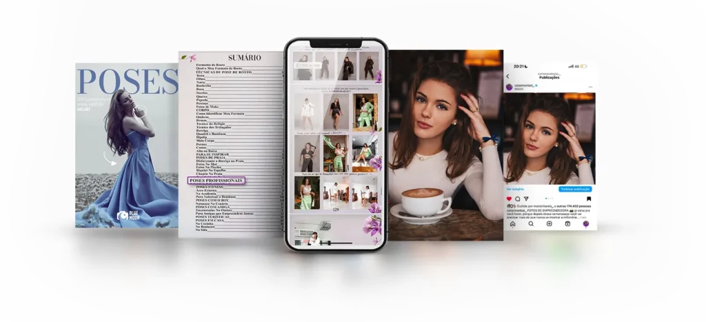 Dentro do guia de poses você tem tudo o que precisa para AMAR sua foto. Além de um guia