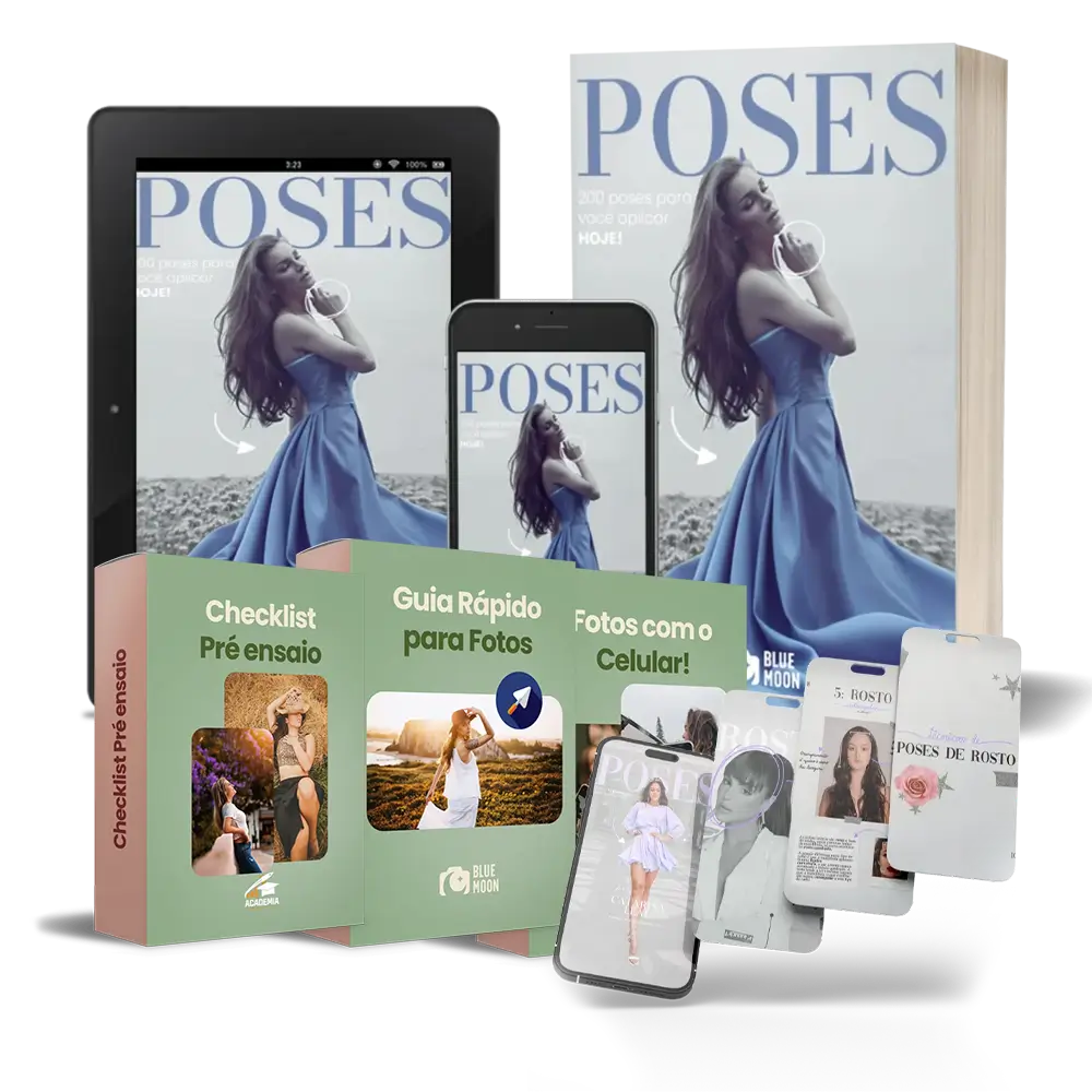 Transforme suas fotos com mais de 200 ideias de poses, desbloqueie sua criatividade e esqueça as dificuldades na hora de posar para fotos.